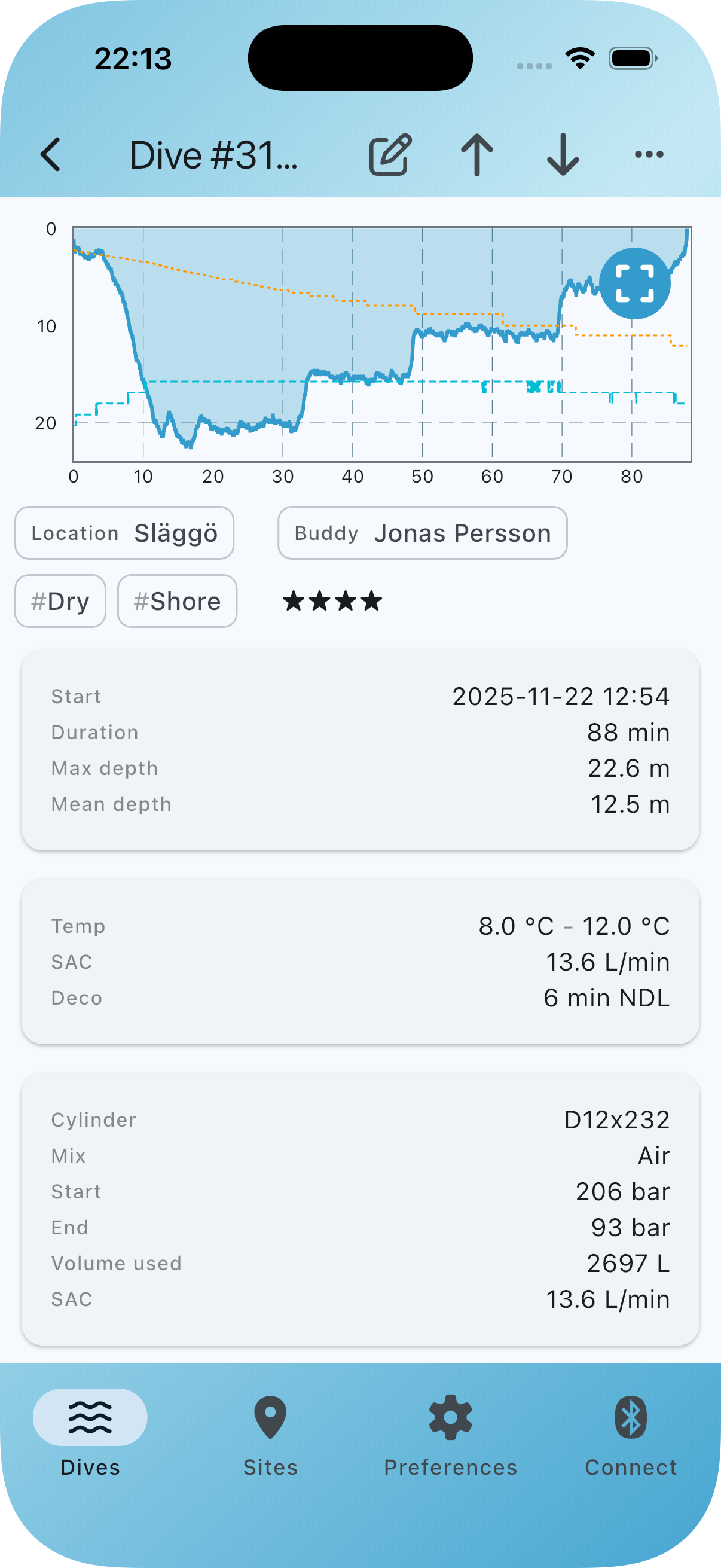 - Manage dives and dive sites, with tags, ratings, and descriptions