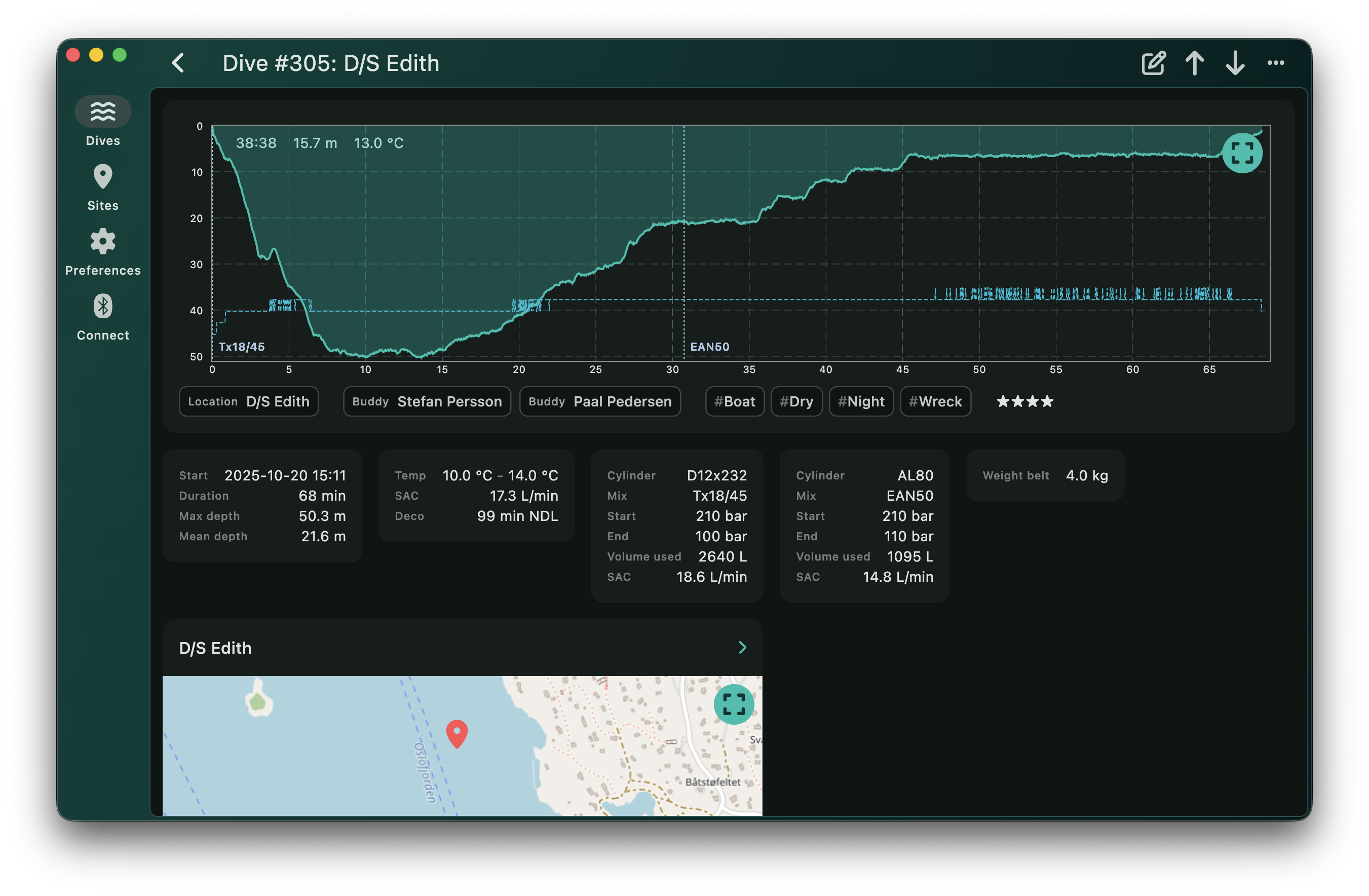 - Manage dives and dive sites, with tags, ratings, and descriptions